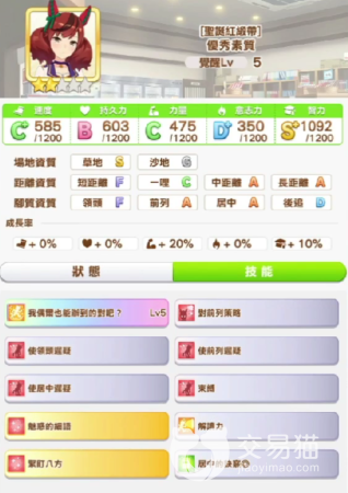 在角色养成方面的建议是培养初期尽量只进行两个红色传说技能的加点,而绿色场地技能、金色加速技能可以用来增加容错率。如果培养初期就点很多红色技能,很容易在培育的时候出现暴毙的情况。到了游戏的中后期,很多小伙伴已经拥有了高破支援卡,这时可以使用全红技能或者多红技能的加点方式,使角色在作战的时候给主力角色带来有效的帮助。