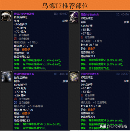 不过德鲁伊也是不太吃套装的,基本喵叔还是推荐大家散件流吃排骨,慢慢入手比较香哦,套装随缘拿即可!