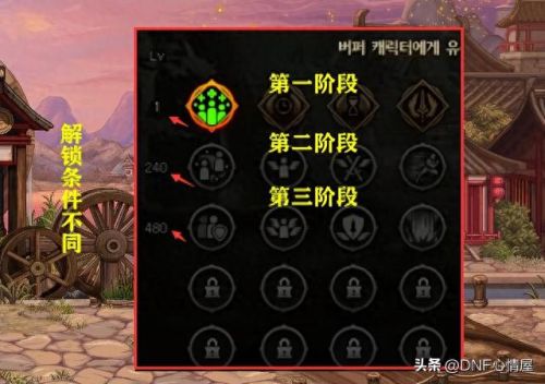 2阶段“天赋”属性解锁,要身上的“仙系列”装备,词条总和达到“240”;3阶段“天赋属性”解锁,身上的“仙系列”装备,词条总和需达到“480”。