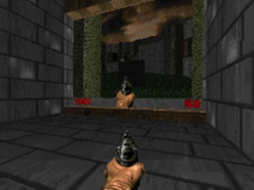 Kgsws还添加了一个无缝切换两部游戏按键控制的功能。因为这个“关卡”同时且独立运行了两部DOOM,运行设备也需要双倍的内存,“至少16MB”。