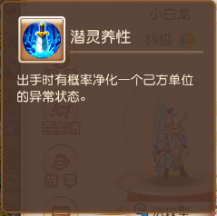 特点:能解封、解毒。“潜灵养性”是小白龙最核心的技能。