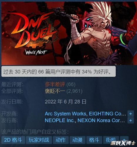 不过一贯在2D格斗游戏上表现优异的Arc System Works却翻车了,平衡性极差的职业设计、服务器频繁掉线、龟速的更新速度等让《DNF:决斗》口碑彻底崩盘,高达300多的售价也成了玩家的笑柄。