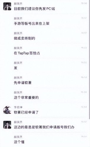 虽然没从聊天中套到任何资料,但在确认坤叔的软著还没申请下来后,赫凤齐用《N+1》已公布的图片,配上一套图文完全无关的仙侠游戏的玩法说明和代码,走加急流程赶在坤叔之前把软著申请了下来。