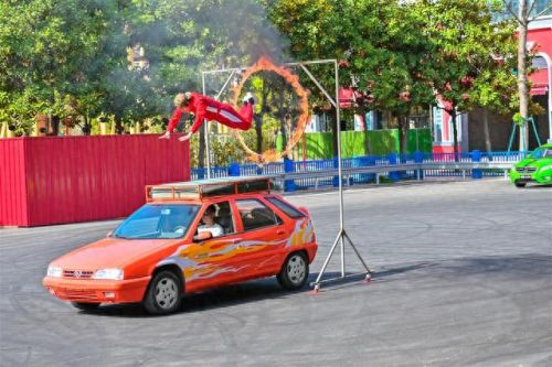 武汉欢乐谷极速世界新区特技秀“夺宝飞车”