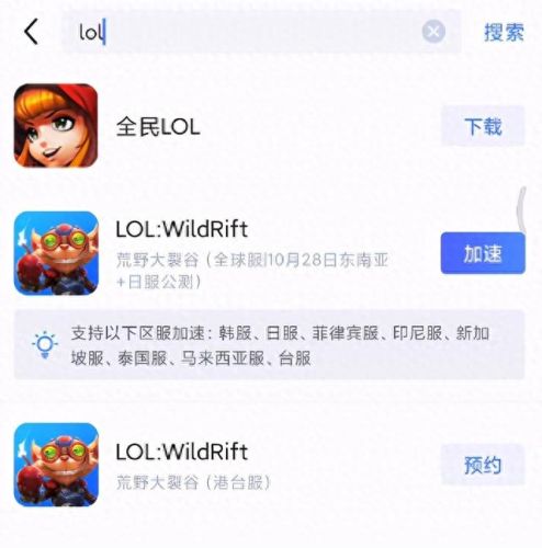 如果小伙伴们没有游戏,加速器里面也可以直接下载LOL手游,在加速器搜索LOL即可。