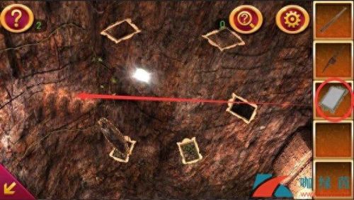 3、点击图中箭头所指位置,看到石板上有三角形区域,点击它发现是一密码器,